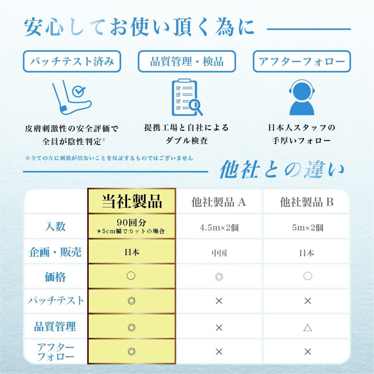 【■たっぷり90回分】1回5cm使っても約3か月分使える大容量。緩衝材に利用されるPEフォーム素材を使用。衝撃吸収・圧力分散で足の負担を軽減します。●素材:ポリエチレンフォーム・ホットメルト ●長さ4.5m 幅2.5cm 厚み1mm ●男女兼用のテープタイプ ●90回1巻き×2セット